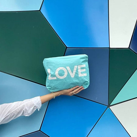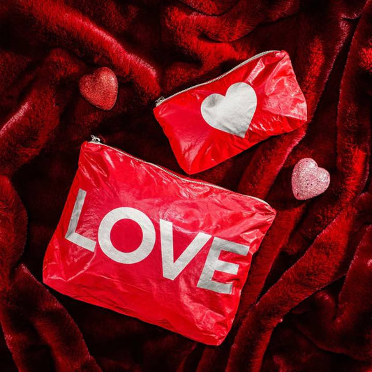 Cosmetic Case or Lunch Box in Silver with White "LOVE"